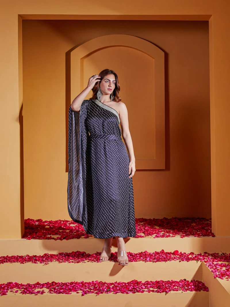 The Red Printed Chiffon Dress is a captivating blend of elegance and vibrant charm, perfect for making a statement on any occasion. Crafted from lightweight chiffon, this dress features a stunning red hue adorned with intricate prints that add depth and character to its flowing silhouette. The airy fabric drapes beautifully, creating a graceful movement with every step. It is designed with a flattering fit,