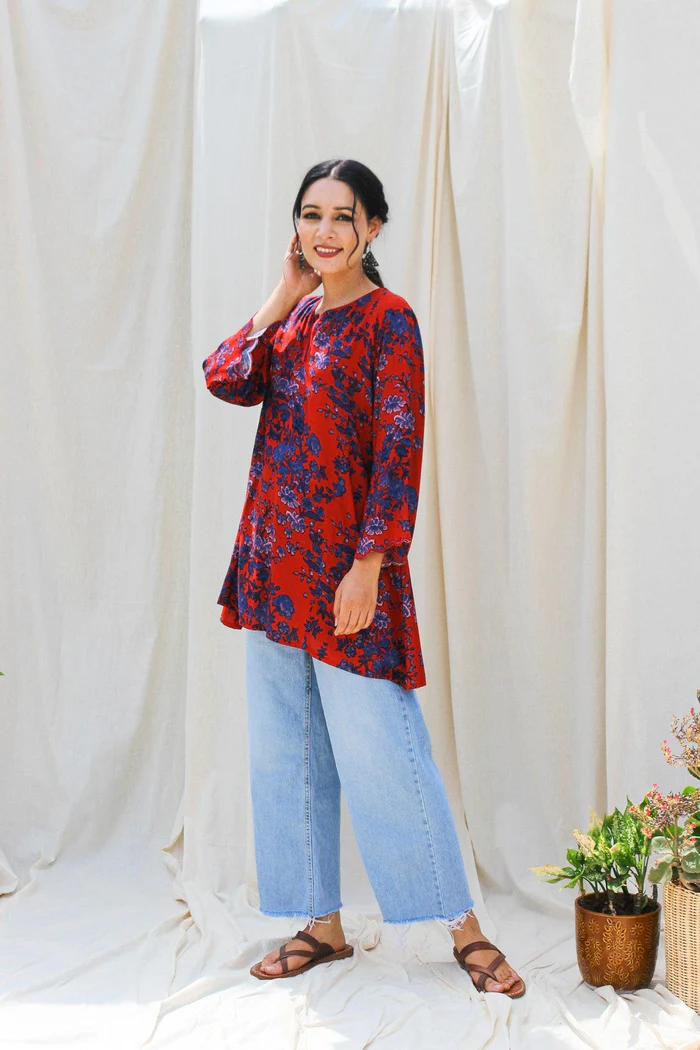The Rubia Floral Printed Kurta is a delightful fusion of elegance and charm, perfect for those who appreciate the beauty of traditional prints with a contemporary twist. Made from high-quality, lightweight fabric, this kurta offers exceptional comfort, making it ideal for all-day wear. The kurta features a vibrant floral print in shades of rubia red, adding a touch of freshness and femininity to the design.