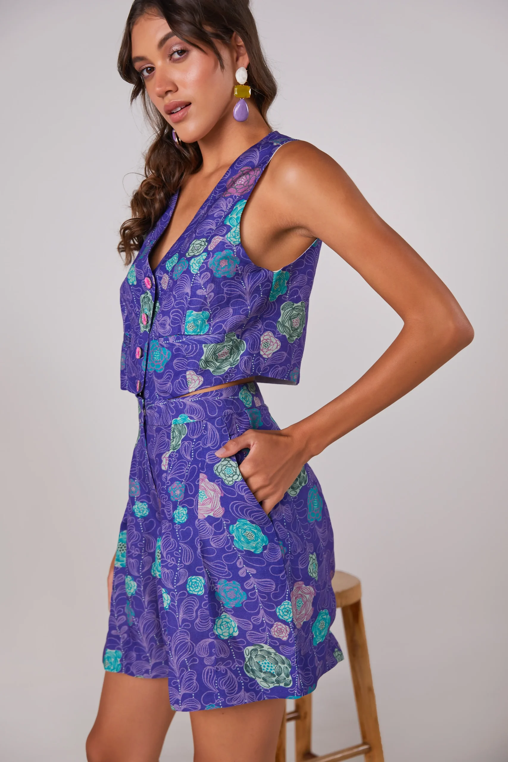 Unleash your feminine energy with our stunning violet floral playsuit! Made with cotton linen fabric, it’s not just stylish but also breathable for those sunny days. The cutout detail at the waist is designed to accentuate your curves, while the hand-embroidered floral buttons add a touch of whimsy. And let’s not forget the shorts, and darts added for a flawless fit. 🙌 Get ready to turn heads and feel confident in this professional yet playful piece.